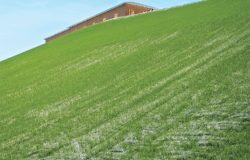 The Curlex Enforcer is a biocomposite Turf Reinforcement Mat (TRM) designed to enhance germination, reduce slope and/or channel erosion, and permanently reinforce vegetation. It consists of naturally seed-free Great Lakes Aspen curled wood excelsior fibers bound by two layers of extra heavy-duty black UV-enhanced netting. The Curlex Enforcer is furnished in rolls with polyethylene wrapping to protect against the elements prior to installation and may be ordered in Master-Paks of fifteen rolls banded together to minimize material handling requirements. The Curlex Enforcer is suitable for slopes up to .5H:1V and rated for channel flows up to 11 ft/s (3.4 m/s) unvegetated or 17 ft/s (5.2 m/s) vegetated.